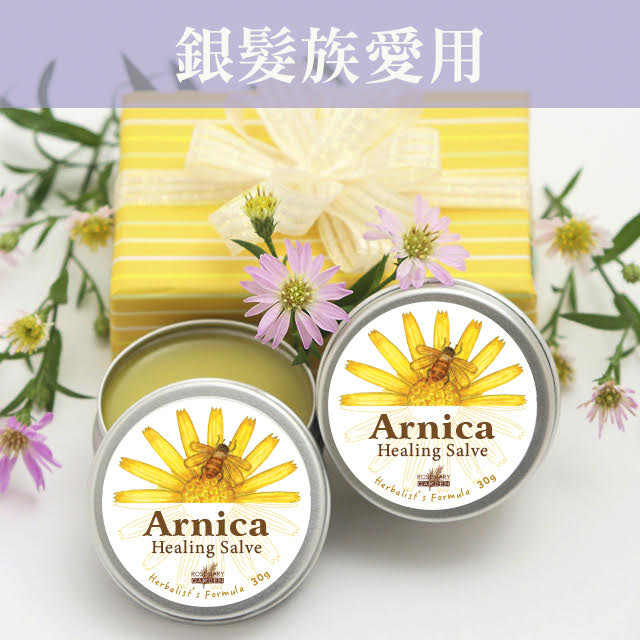 Arnica infused Olive oil*, St. John's wort infused Olive oil*,Feverfew infused oil* Comfrey leaf infused Olive oil*, Helichrysum EO*, Ginger root EO*, Rosemary EO*,Turmeric root EO*, Jojoba Oil*, Sambucus nigra Fruit Extract, Rosemary Extract*. Beewax*,*Certified Organic
